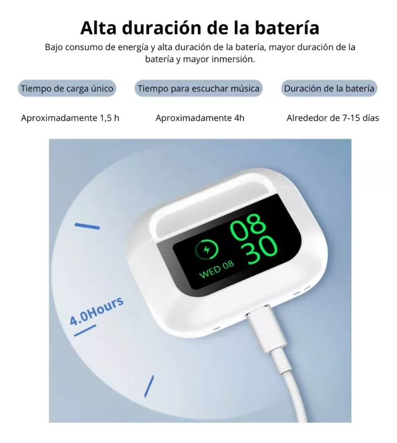 ✅ Estuche de Carga Inteligente 📱: Control táctil sin app.